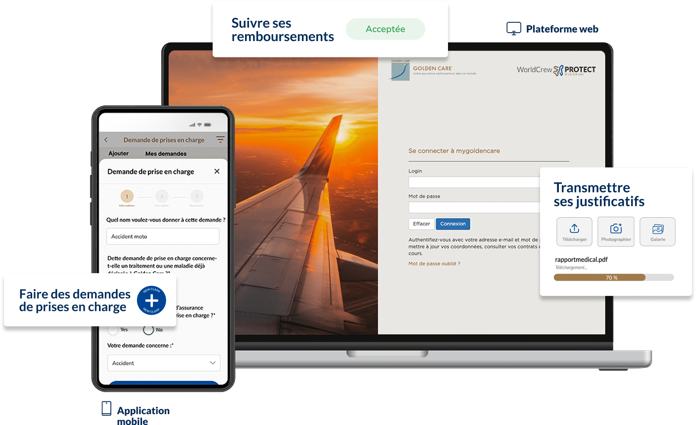 La gestion de votre contrat d’assurance santé internationale ne devrait pas être un voyage semé d’embuche. Pour simplifier la gestion quotidienne de votre contrat santé, WorldHealth Protect met à votre disposition un espace personnel sur mygoldencare.com